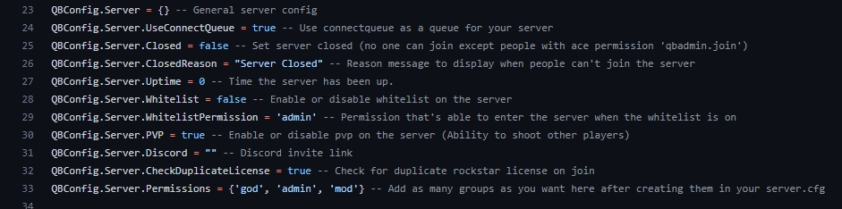 Here you can add more groups, lets say I wanted to make one for police I would have QBConfig.Server.Permissions = {'god', 'admin', 'mod', 'leo'}